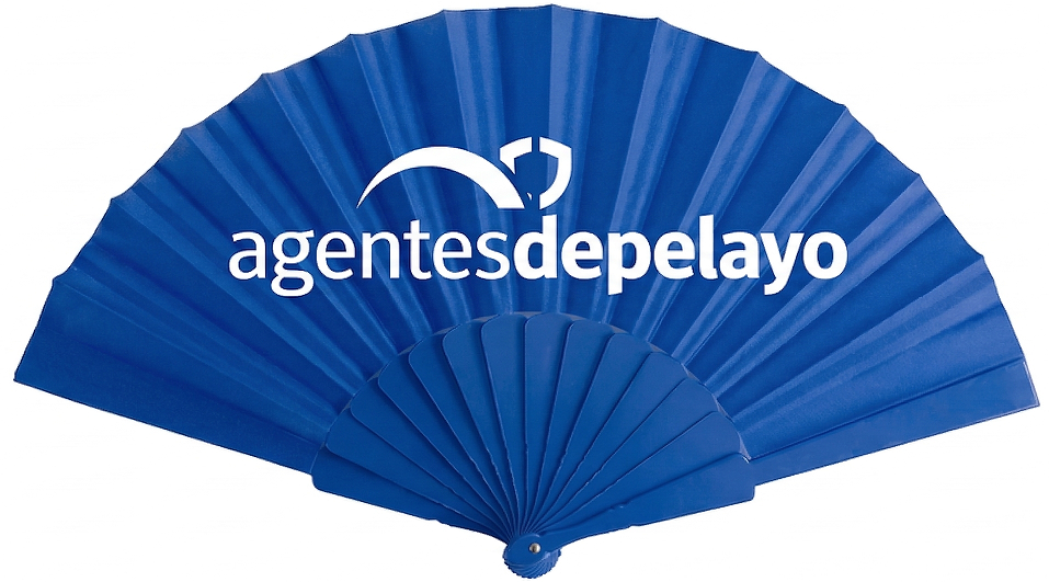Parasoles de fondo blanco, con el logo que elija, y los datos de su oficina.